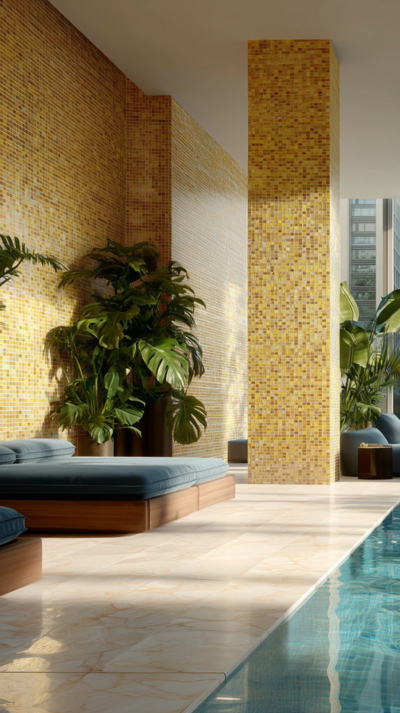 Fabriqué à partir de verre résistant, le GMG134 Amsterdam Amber Golden Vein allie élégance visuelle et durabilité. Son matériau résistant à l'eau le rend idéal pour les environnements humides tels que les salles de bains ou les piscines, mais il convient également aux murs et aux zones peu fréquentées ou où l'on marche pieds nus. Une finition luxueuse et pratique pour tous vos projets de décoration intérieure.