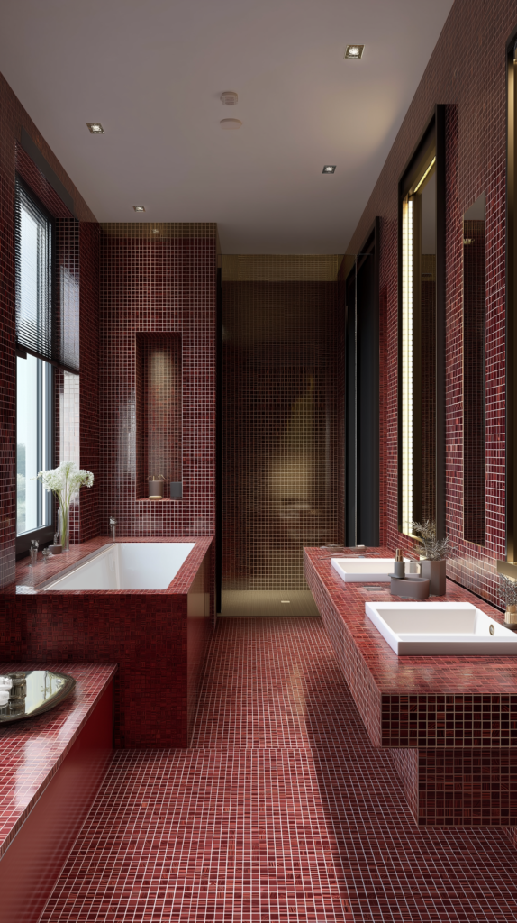 Ce qui distingue véritablement le Wine Red Gold d'Amsterdam, ce sont les veines d'or véritable présentes dans le verre. Lorsque la lumière se reflète sur la surface, les subtils détails métalliques créent un effet visuel saisissant, transformant les murs ou les sols ordinaires en éléments accrocheurs. C'est le choix idéal pour ceux qui souhaitent apporter une touche unique à leur salle de bains, leur cuisine ou tout autre espace.