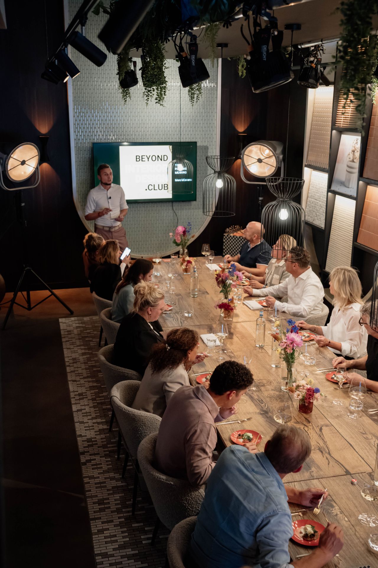 To commemorate the occasion, a select group of guests was invited to an immersive dinner hosted by Bastiaan. The event perfectly reflected what The Mosaic Factory stands for: the intersection of design, creativity, and experience. Guests enjoyed an outstanding culinary journey by OLAF On Location, which transformed the evening into a multi-sensory experience. The dessert course even turned the TMF Experience Centre into a lively club atmosphere, adding a surprising and playful twist to the celebration. A special thanks goes to Marc Müskens from Beyond Interior Design for his interactive and inspiring contribution. His energy and passion for design made the evening even more memorable.