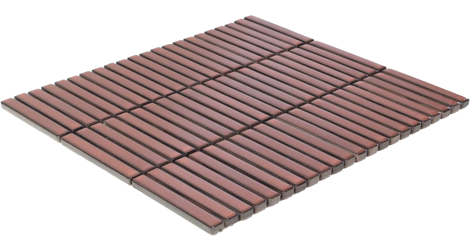 Get to know our SEF12012 Sevilla Kitkat Mini Smoked Cherry Glossy mosaic tile! This sleek, elongated tile is the playful little sibling of our beloved Kitkat Original mosaic. The Kitkat Mini’s are perfect for both commercial and residential/private projects, adding rich texture to any surface.