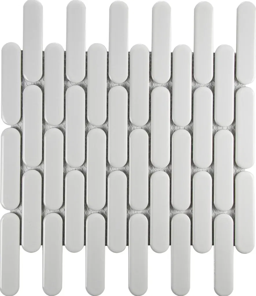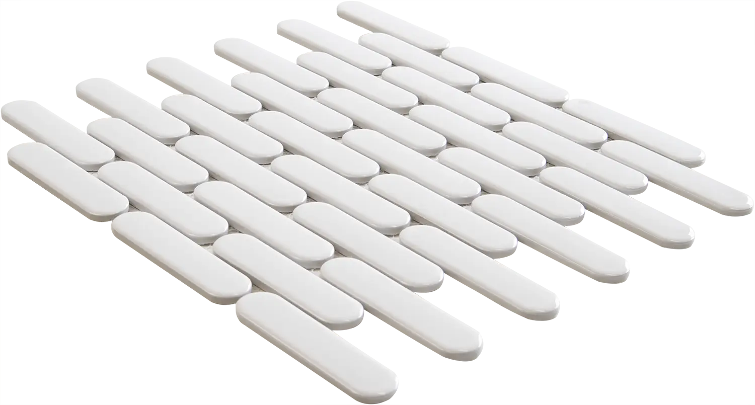 Be amazed by the stunning Sevilla Oval Finger White Glossy and it’s compelling shape. The oval mosaic tile offers a fresh and contemporary alternative to traditional mosaic designs creating a subtle yet striking pattern that complements any interior.