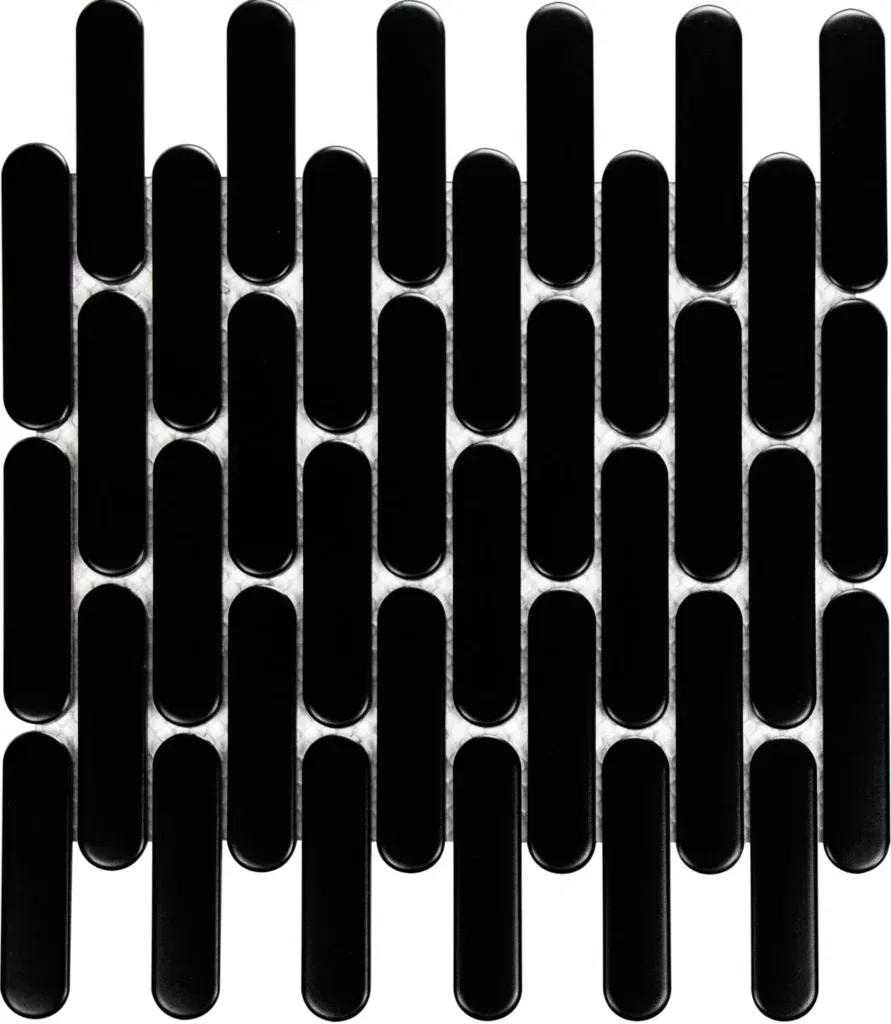 Be amazed by the stunning Sevilla Oval Finger Black Matt and it’s compelling shape. The oval mosaic tile offers a fresh and contemporary alternative to traditional mosaic designs creating a subtle yet striking pattern that complements any interior.