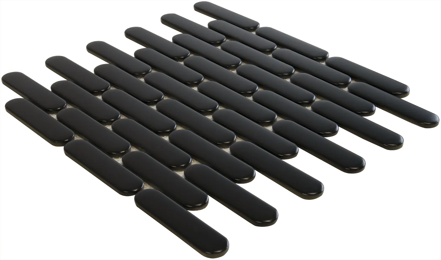 Like the Kitkat Mini, the Oval Finger Black Matt has a convex surface. This gives the tile an interesting popping effect making it literally stand out in your design! From different angles, light reflects on the mosaic tile adding depth and dimension to the surface.